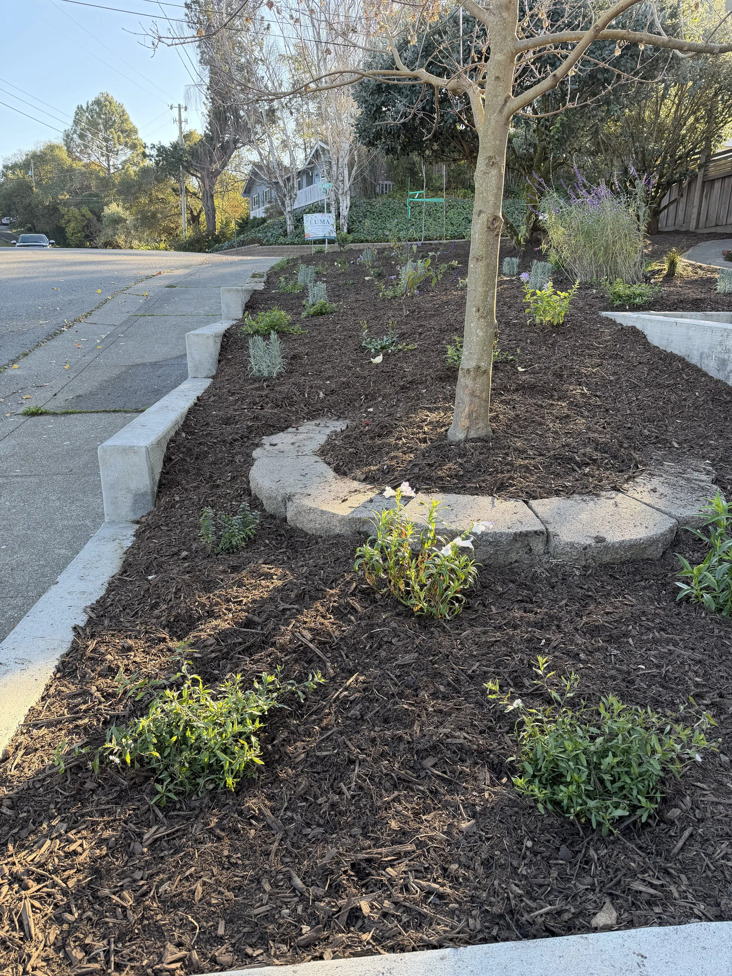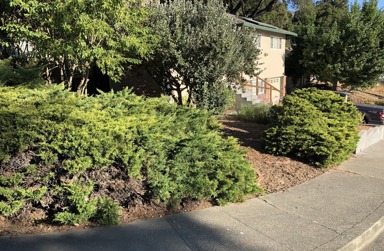 These dear clients were ready to move away from the sterile 1970’s juniper bushes to a more habitat friendly pollinator garden! We added many natives, pollinators in whites, purples and pinks. One rain garden was in the plan to take the rain runoff from down spouts to fill up ground water stores, but once they saw the benefit in their own garden, we had to add another. Yay!!